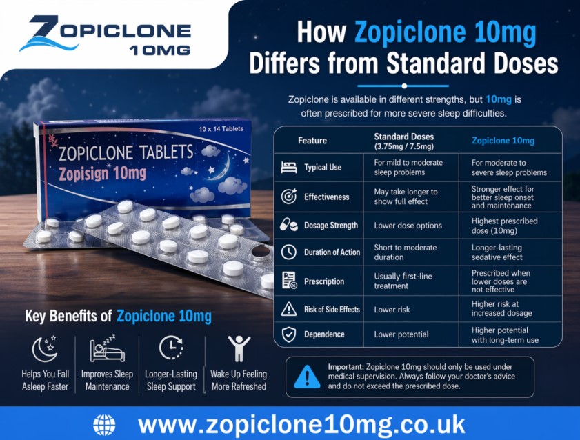 Not everyone responds equally to sleep aids. Fast metabolizers may not get enough from the average dosage, or their body may require a relatively stronger cue to turn off. Zopiclone 10mg is generally one of those drugs for someone who has tried the standard strength and has concluded that it tends to be a bit too subtle.